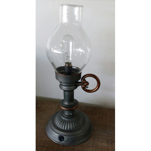 The vintage style lamp features a vintage style look and runs on batteries. W10.